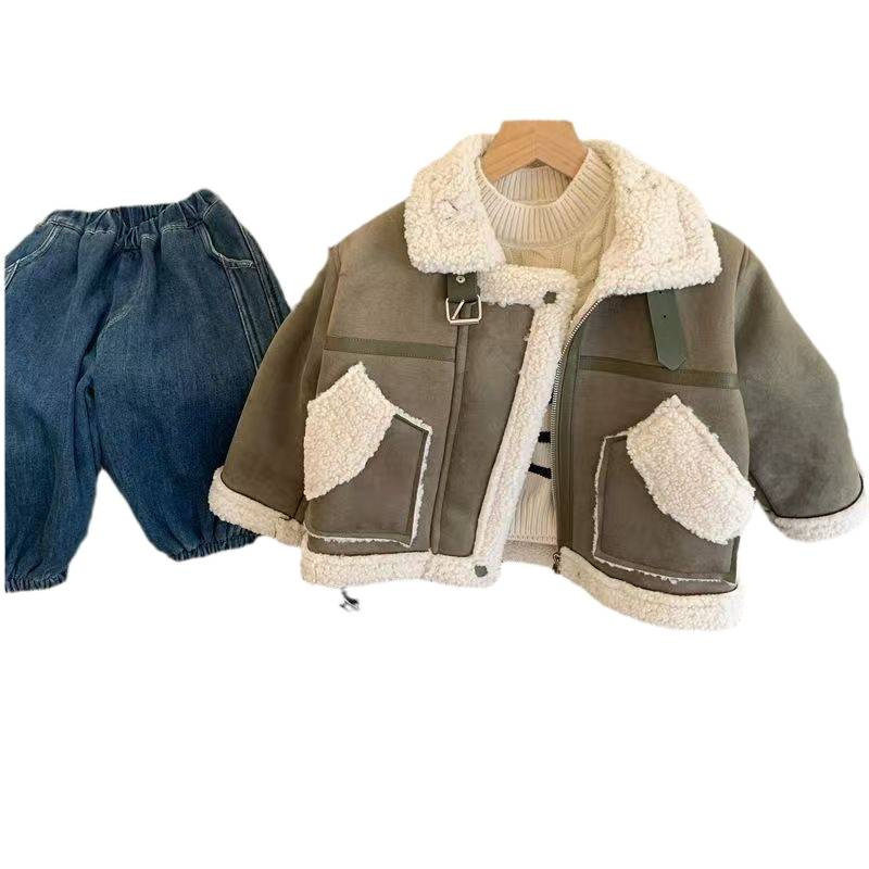男童加绒外套皮毛一体冬季儿童羊羔绒上衣男孩加厚小童秋冬