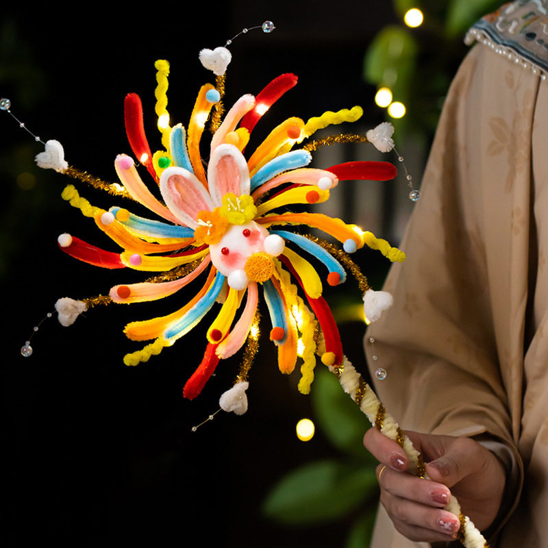 发光旋转风车新春快乐灯笼发光灯笼扭扭棒儿童手工diy材料包花灯