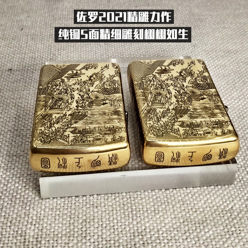珍藏版清明上河图佐罗纯铜精雕煤油打火机商务复古怀旧创意送朋友