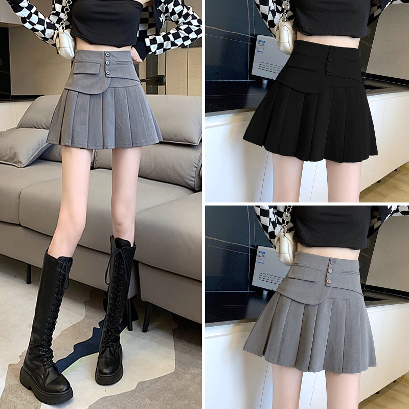 极速百褶短裙半身裙女春春季2024新款高腰a字显T瘦灰色设计感小众