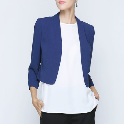 搭配连衣裙蓝色小西服外套女夏季西装无领春秋短款外搭上衣薄大码