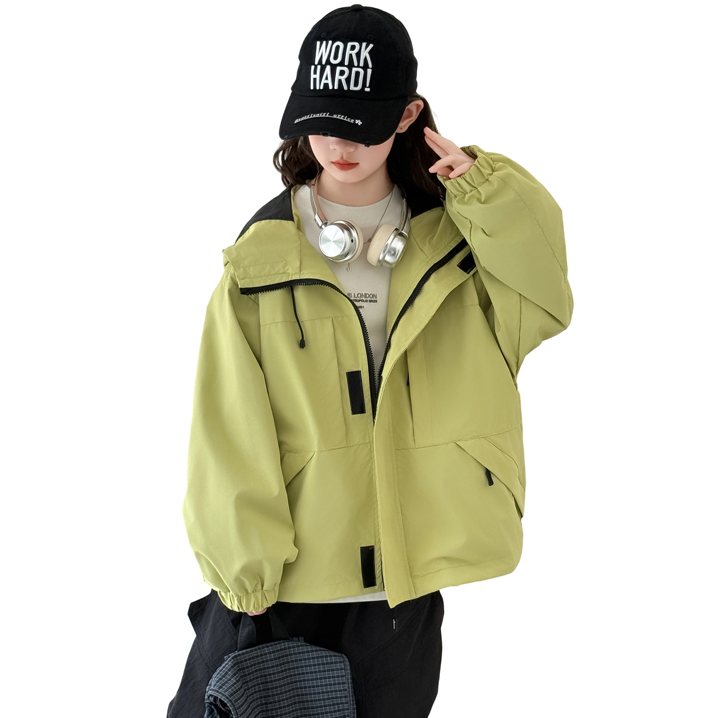 女童秋外套2025新款洋气大童春秋款超好看韩版休闲百搭连帽冲锋衣