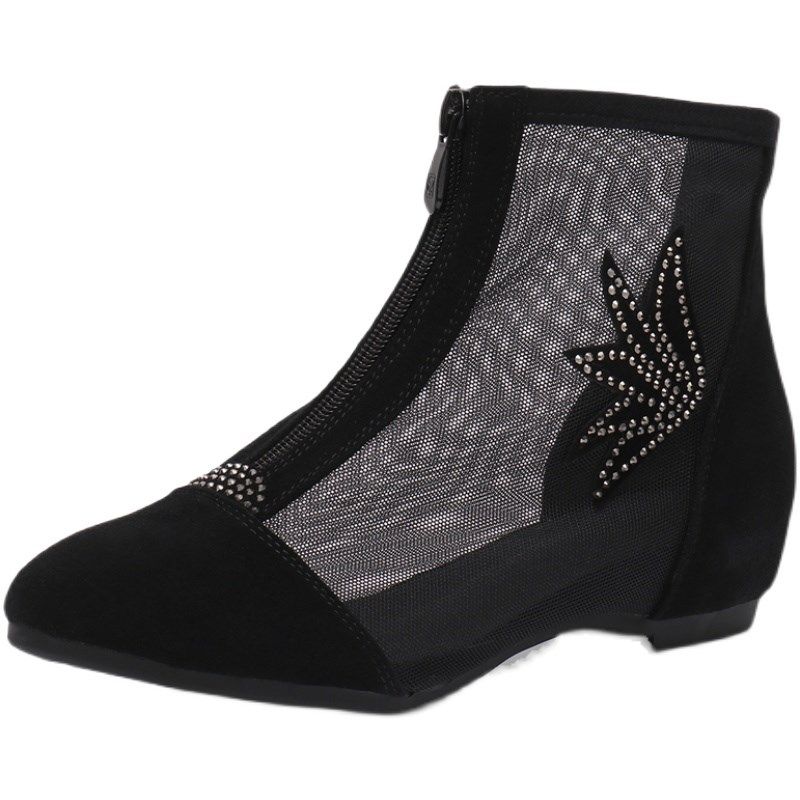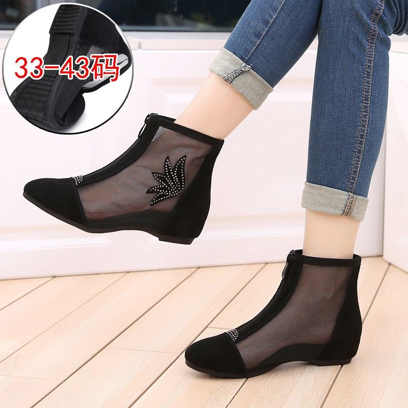 春秋镂空靴子女真皮平跟透气网纱短靴内增高薄款凉靴中年网靴女鞋
