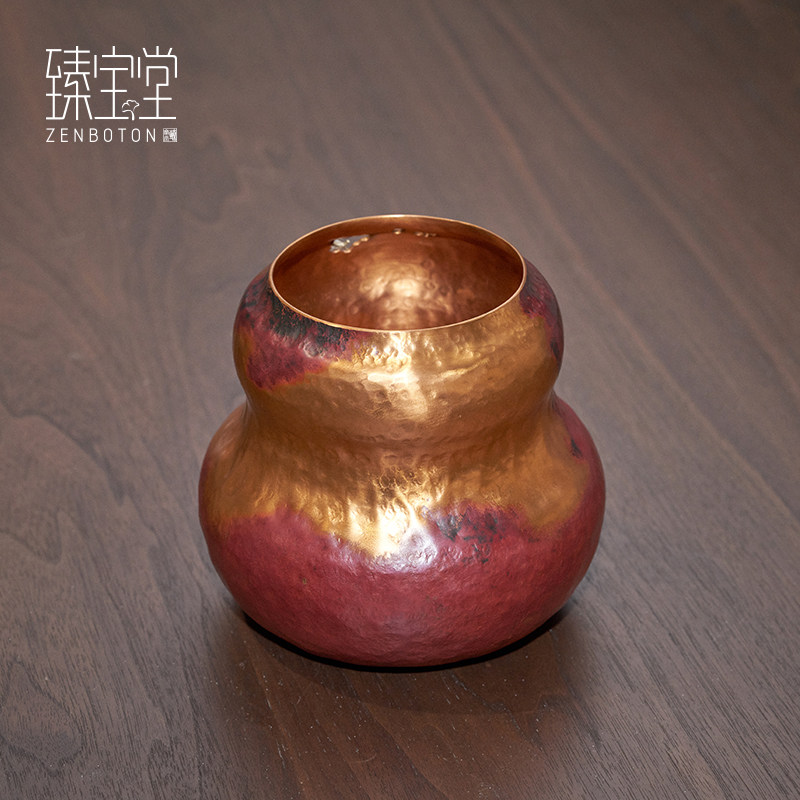 臻宝堂铜建水葫芦型茶洗小号纯手工锤纹茶渣桶家用茶具茶道配件