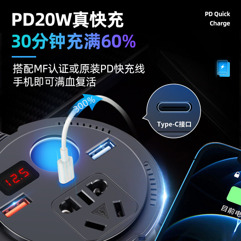 车载充电器12V12V转220V电源转换器汽车用多功能PD快充插座逆变器