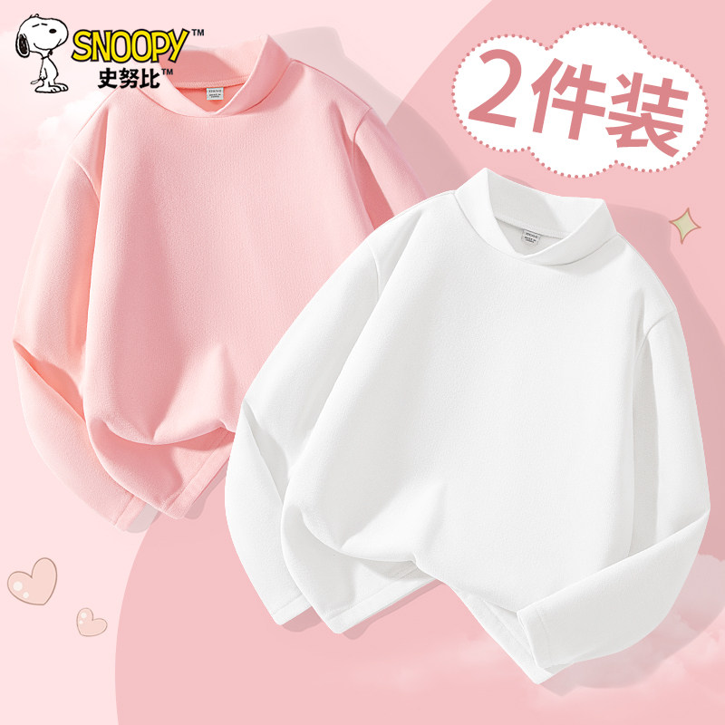 史努比女童德绒打底衫秋冬2026新款儿童秋衣女大童纯色半高领上衣