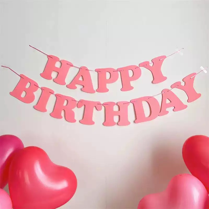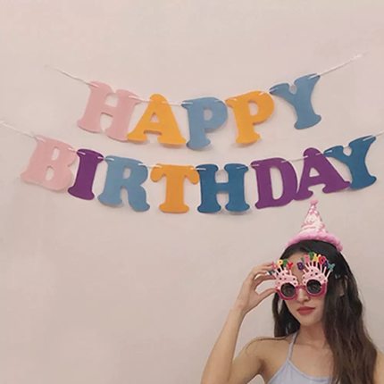 ins马卡龙生日快乐拉旗宝宝周岁无纺布装饰布置背景装扮氛围感