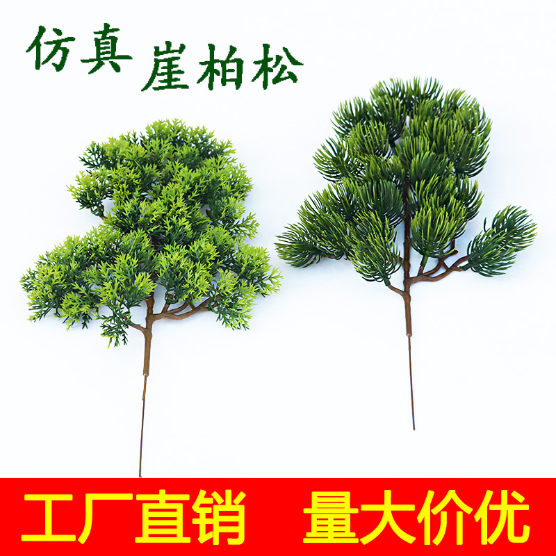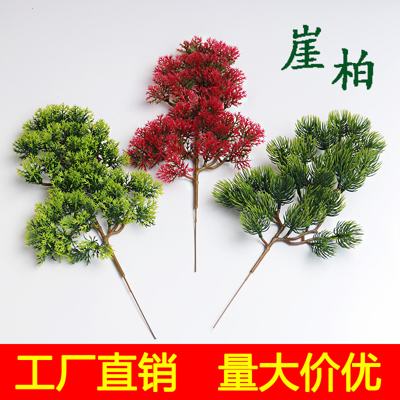 仿真松针崖柏树枝假花松树盆栽装饰松枝道具干花塑料花叶客厅摆件