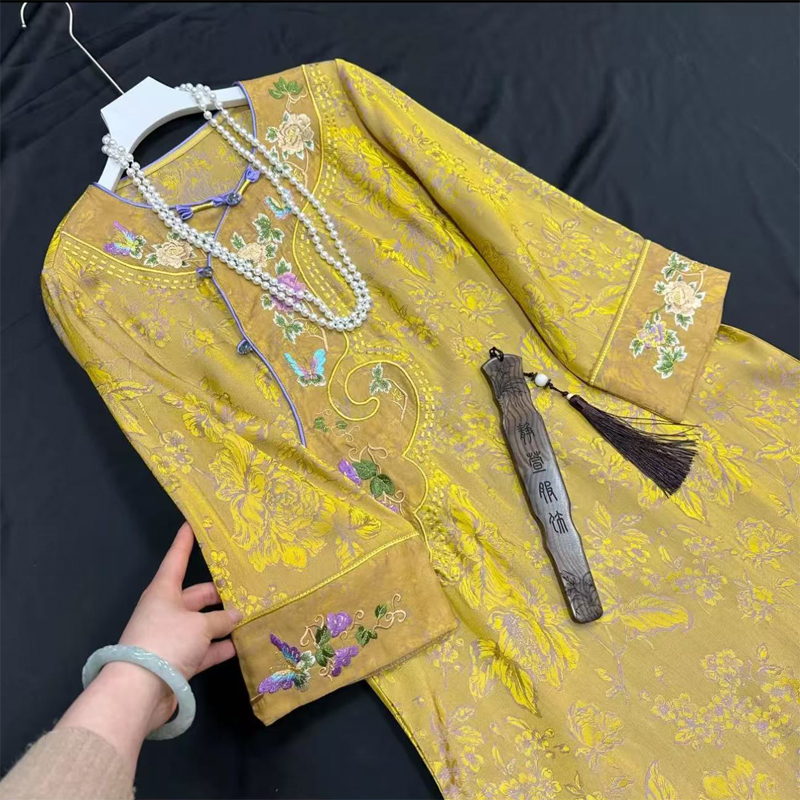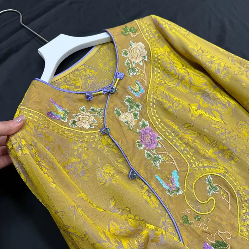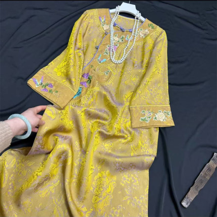 夏季2025新款新中式高级感国风连衣裙改良旗袍复古圆领A版大码裙