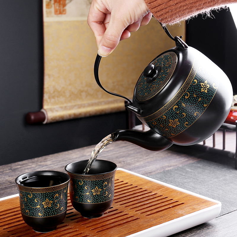复古陶瓷大容量提梁泡茶壶功夫茶杯具套装家用餐厅耐高温水具托盘