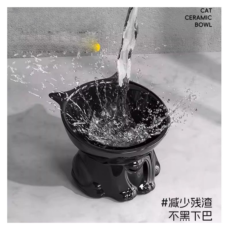猫碗猫食盆黑色喝水碗斜口高脚宠物狗粮食饭碗保护颈椎防打翻猫盆