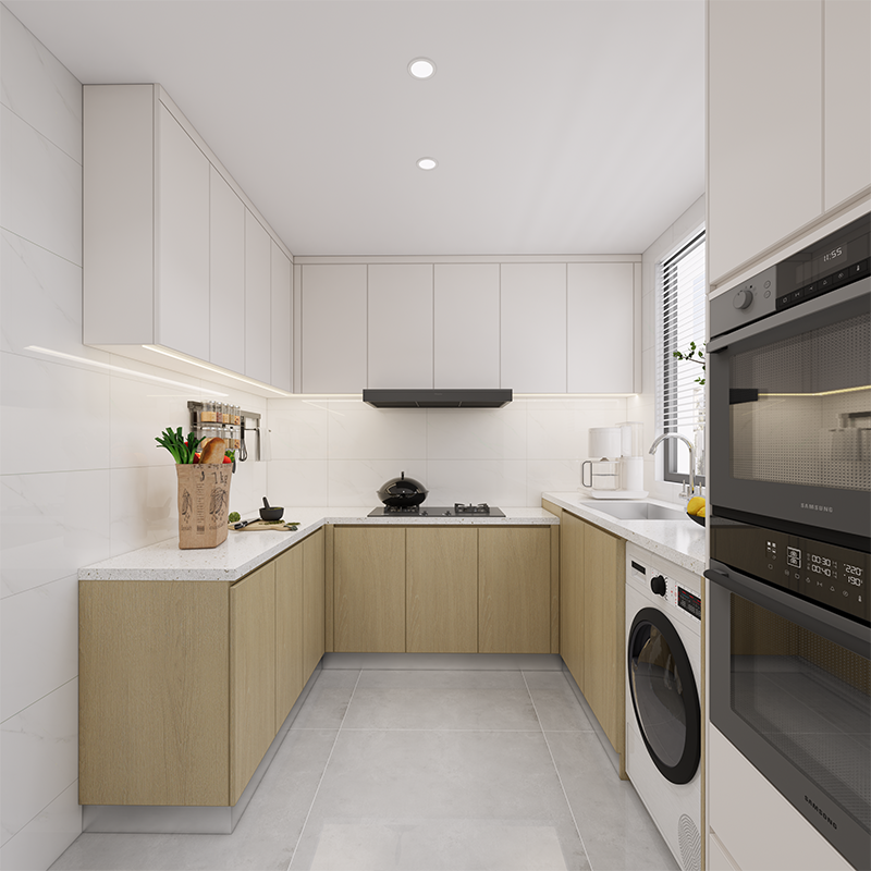 香港全屋定制公屋L型U型厨房橱柜吊柜石英石灶台煮食炉洗衣机雪柜
