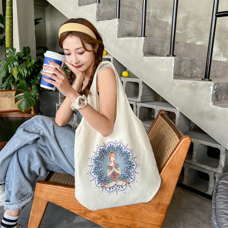 帆布袋定制logo大容量空白购物袋手绘环保手提棉布袋印图案瑜伽馆