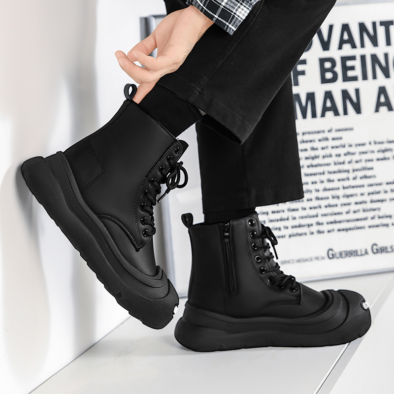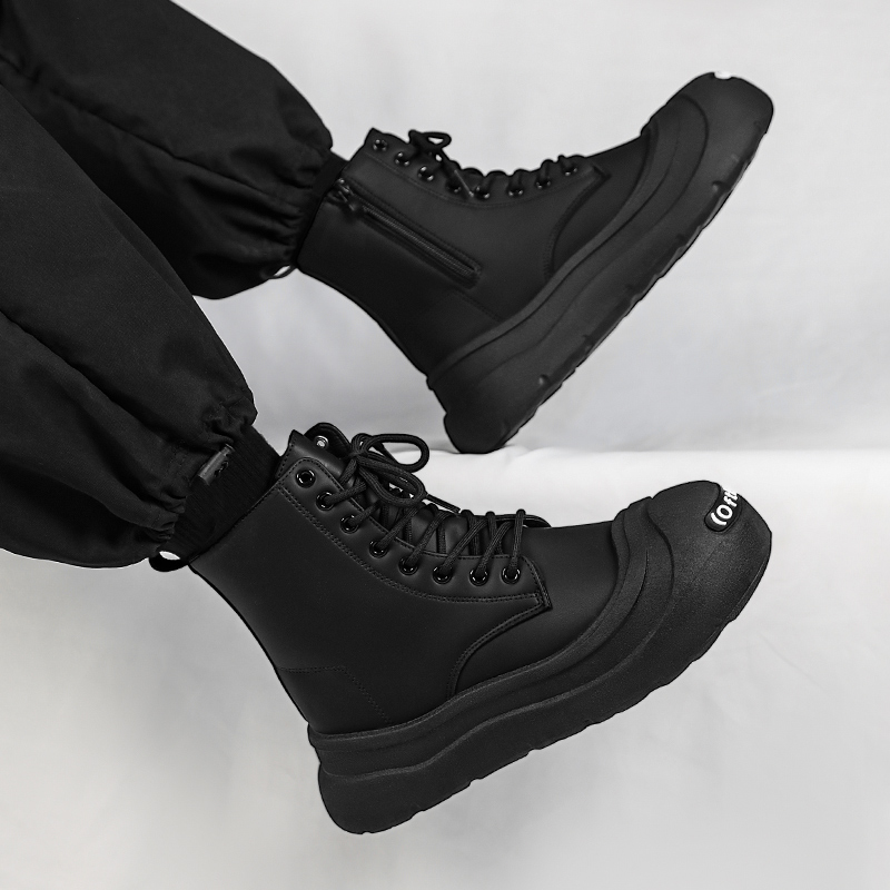高帮男鞋2025新款秋季开口笑丑萌大头板鞋青少年全黑色运动休闲鞋
