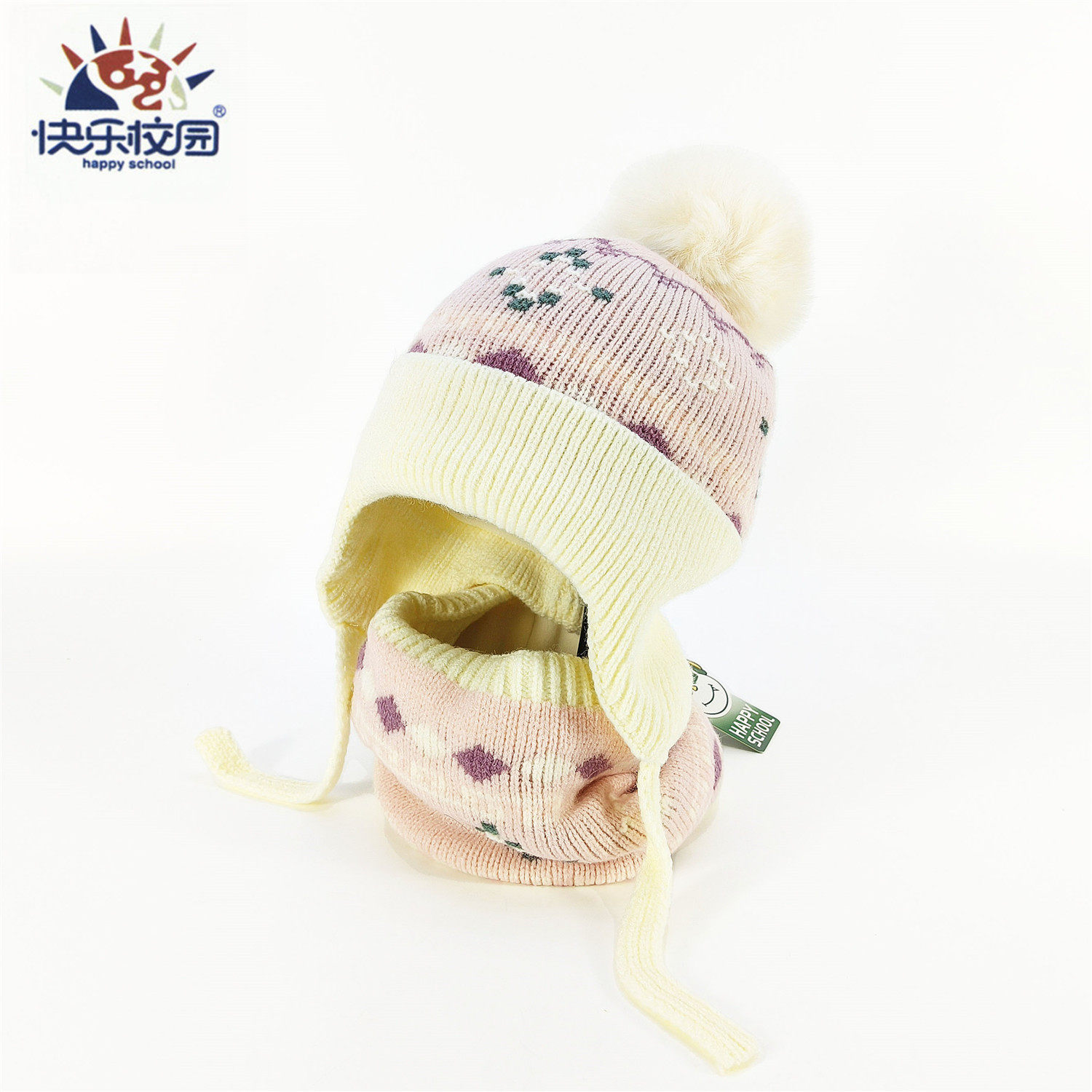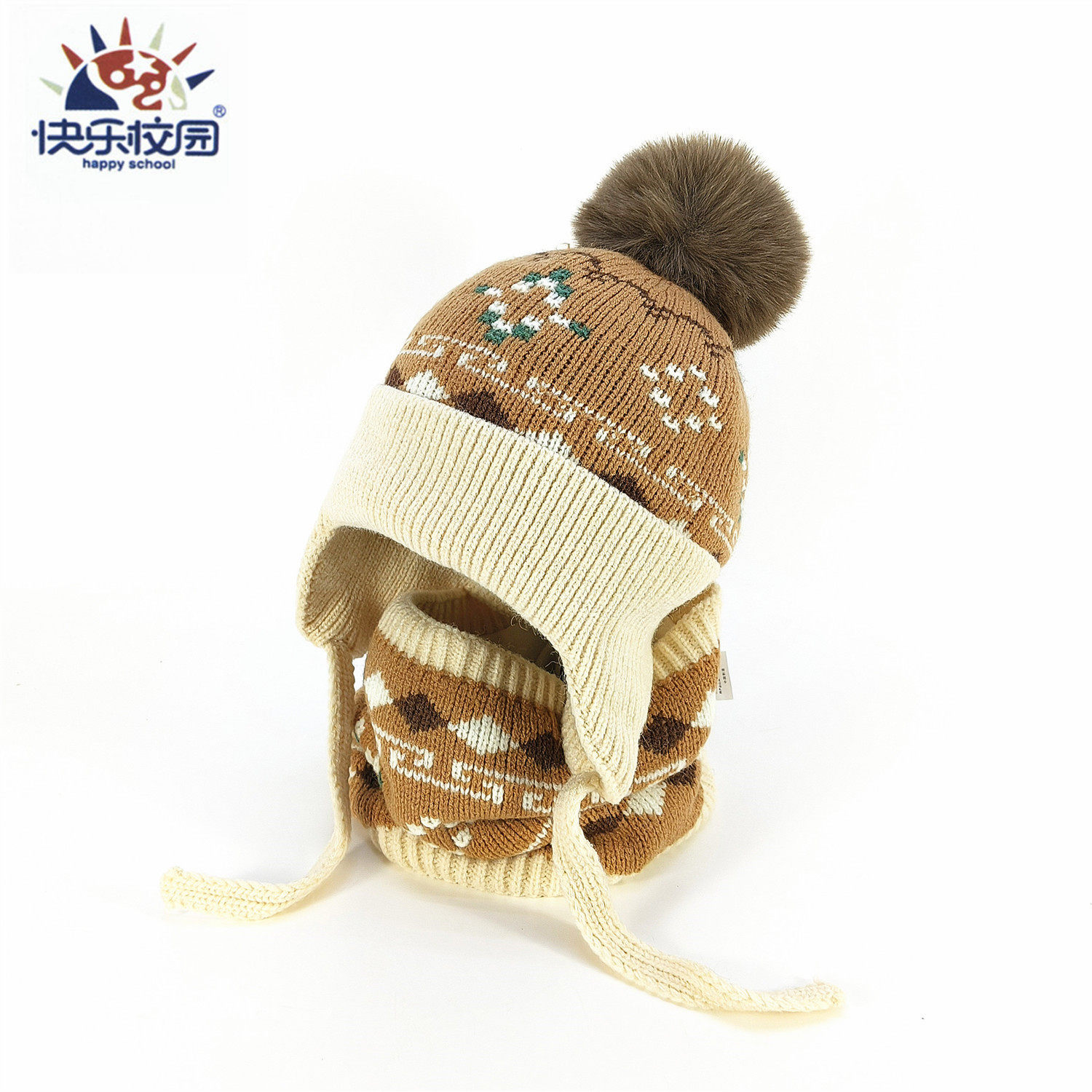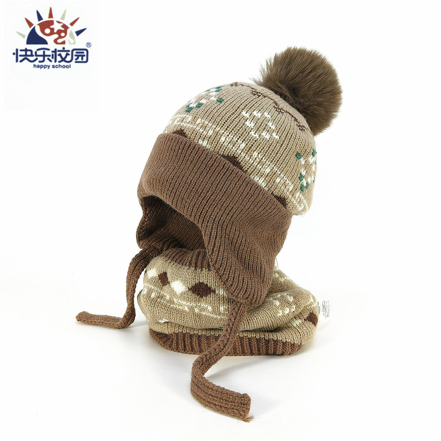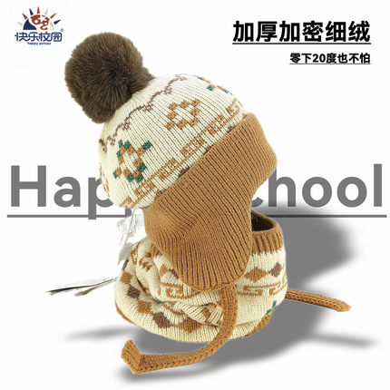 宝宝针织毛线帽围脖套装秋冬保暖防风护耳帽男女童加绒加厚二件套