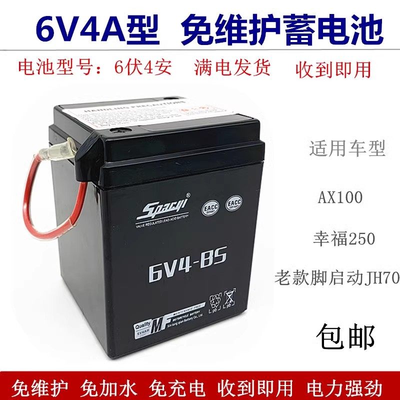 摩托车电瓶老款脚启动嘉陵JH70AX100幸福250干水蓄电池6V4A免维护