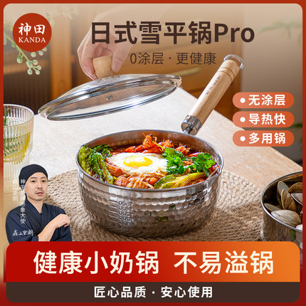神田日式雪平锅带盖款 煮面汤锅泡面锅家用小煮锅子不锈钢小奶锅