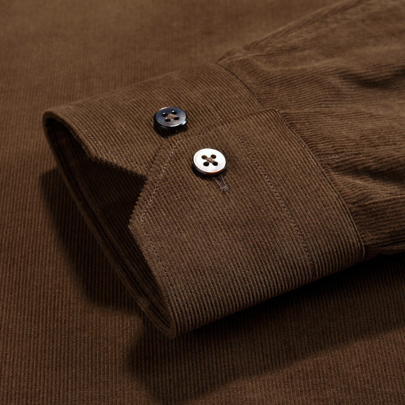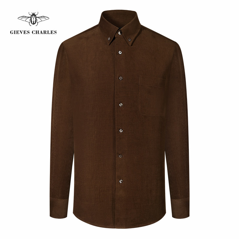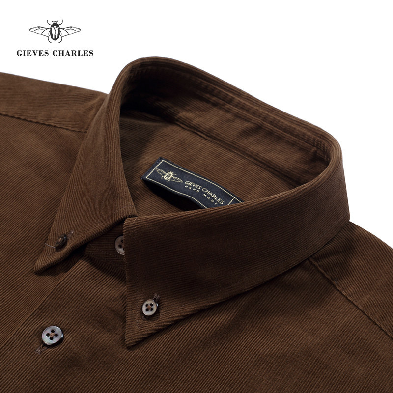 【秋冬款】复古焦糖棕纯棉灯芯绒纽扣领衬衫男士商务休闲衬衫保暖