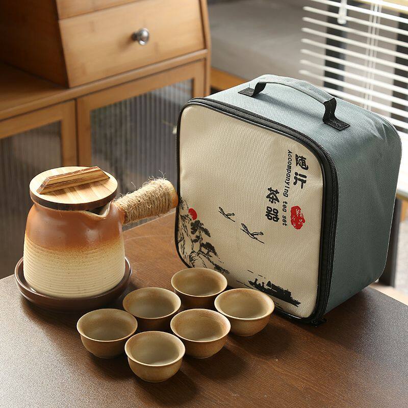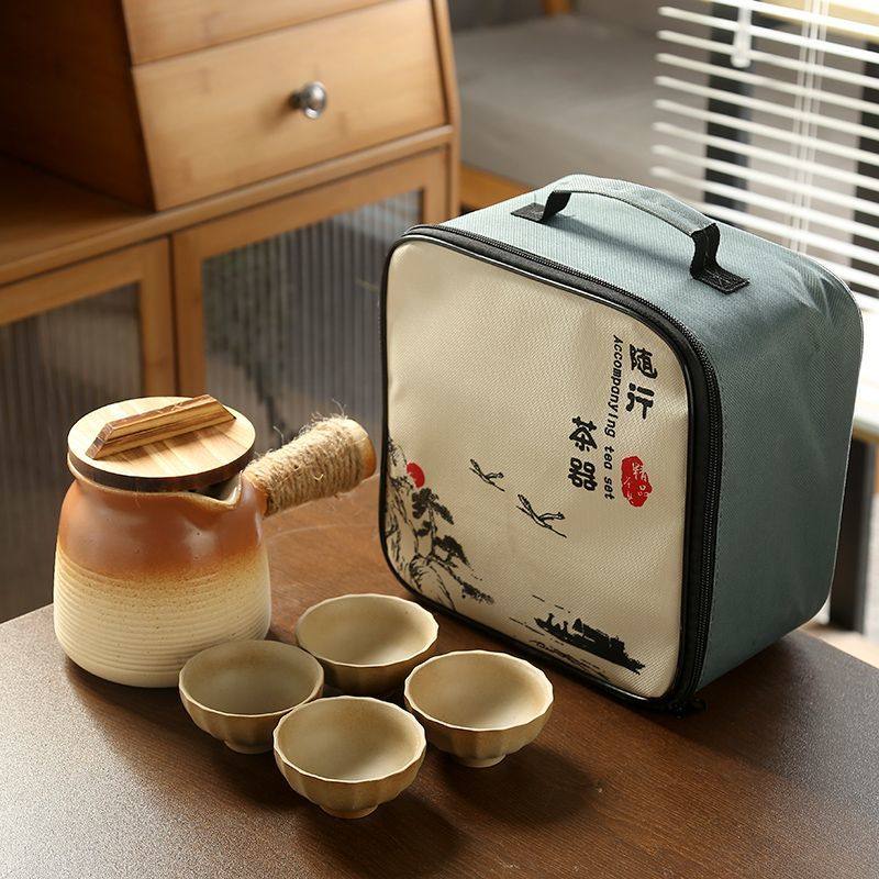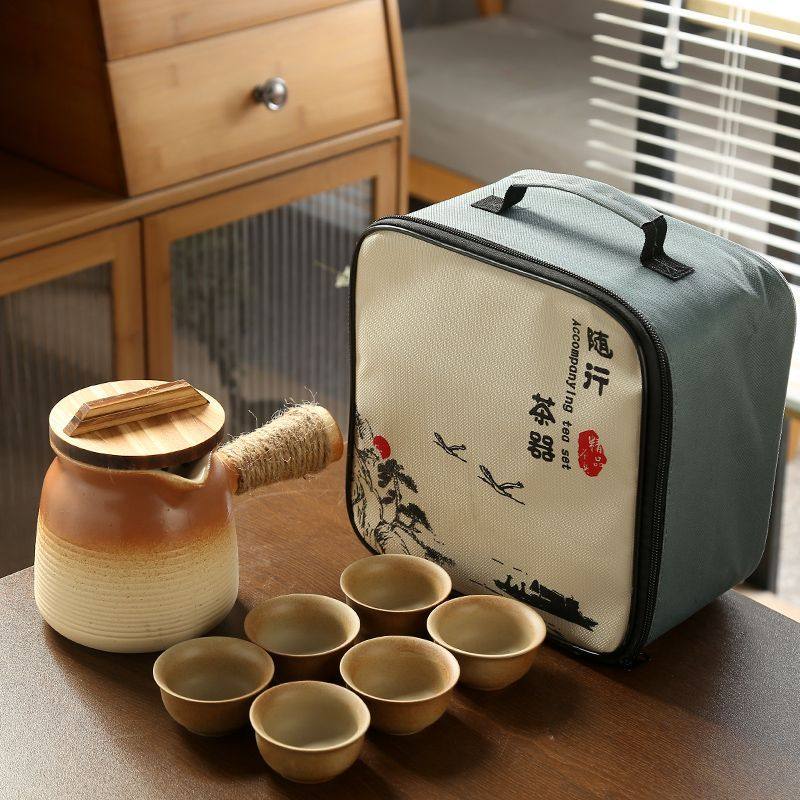 【带盖】围炉煮茶壶可干烧侧把壶粗陶功夫茶具罐罐壶烤奶茶收纳包
