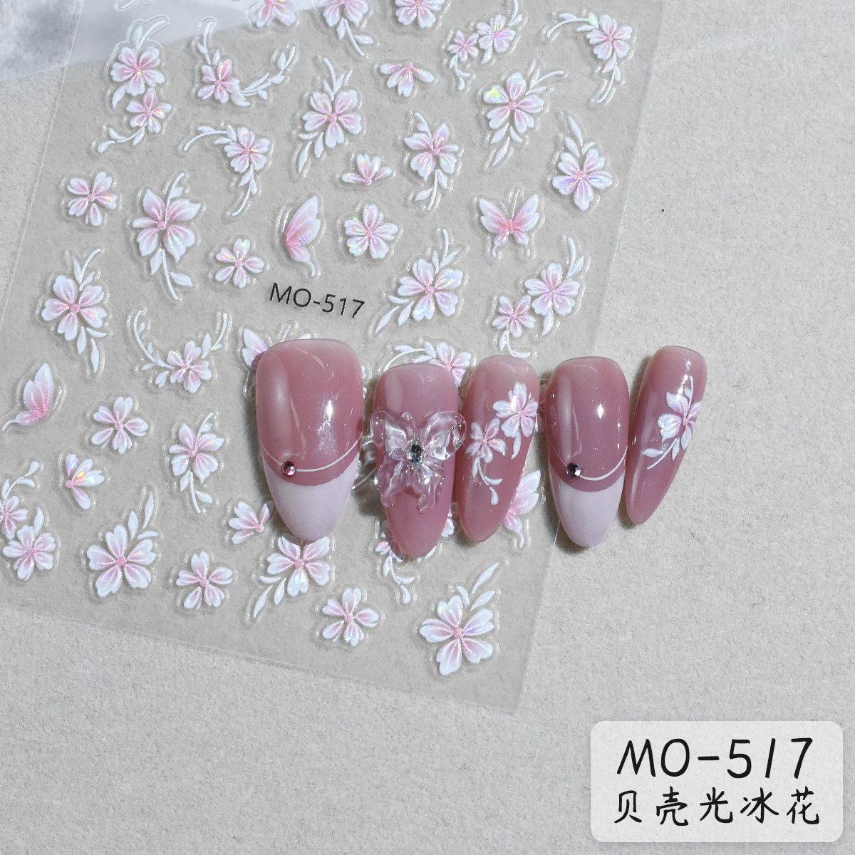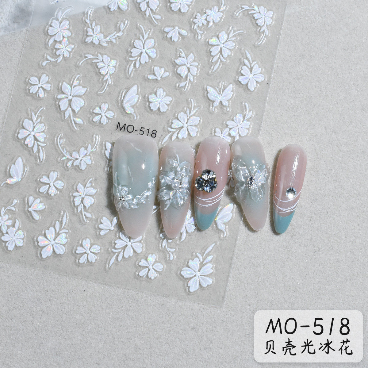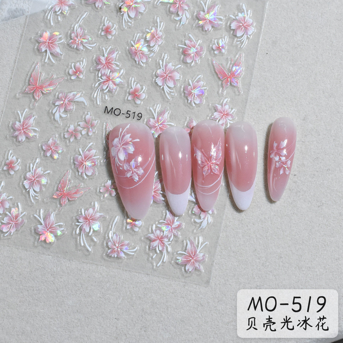 【花校长】贝壳光立体冰透花贴纸美甲喷绘模板贴纸法式边条纹