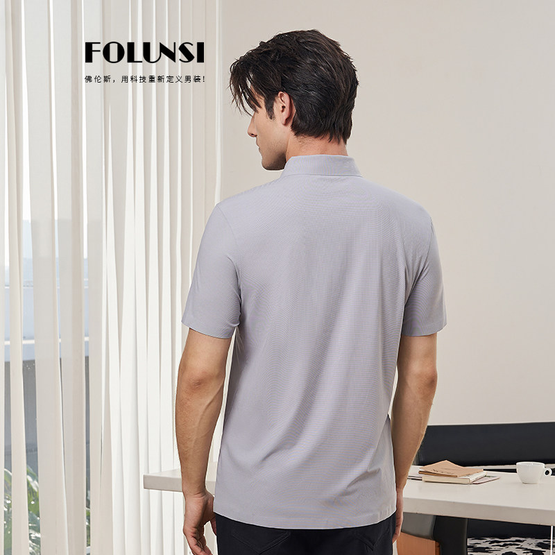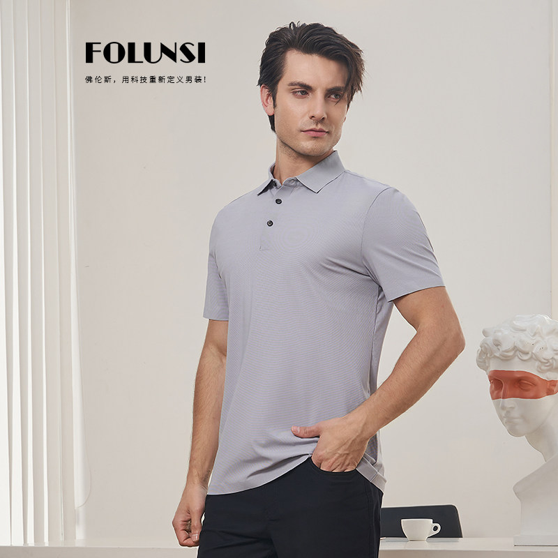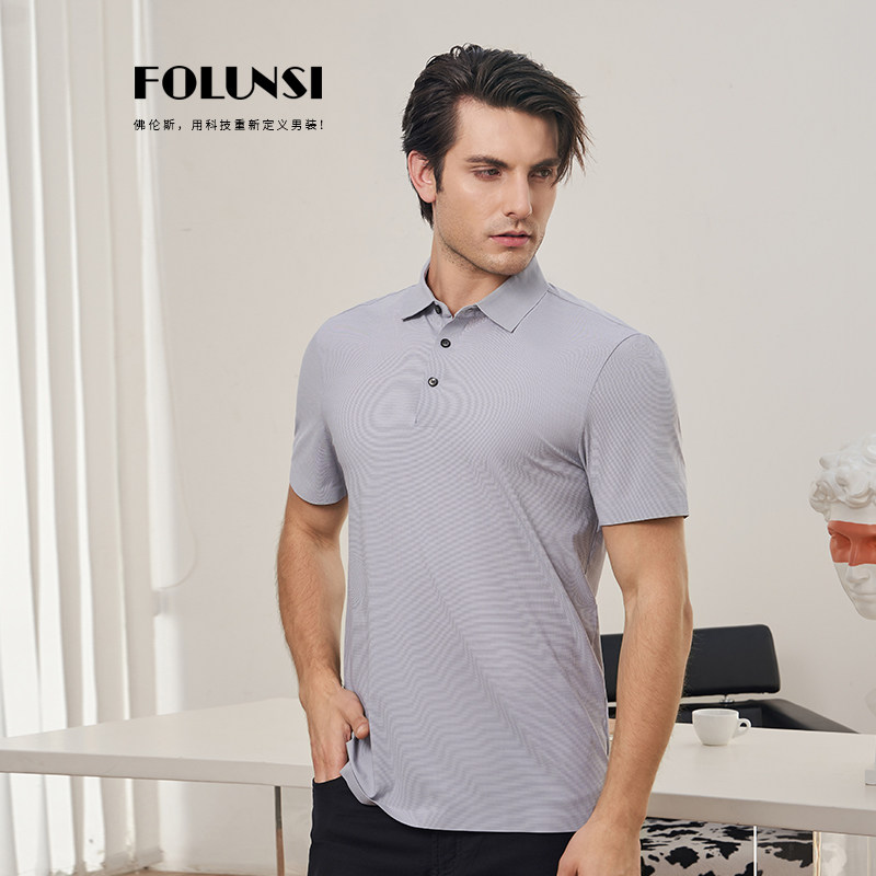 佛伦斯folunsi男装男士t恤短袖男夏季上衣灰色商务休闲polo衫半袖