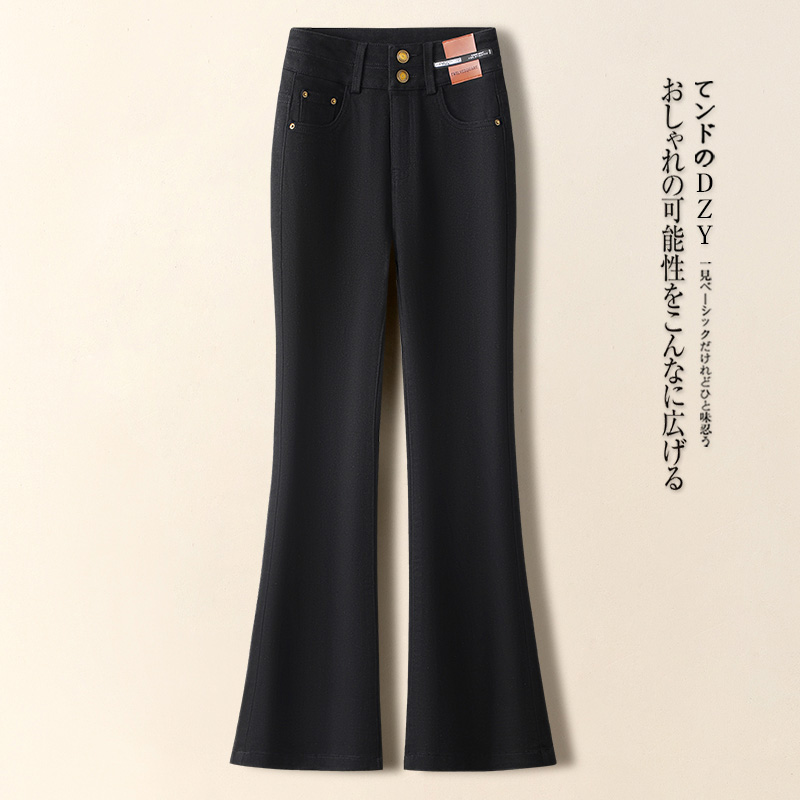 啄木鸟高腰微喇牛仔裤女春秋高腰垂感九分裤复古美式修身喇叭裤