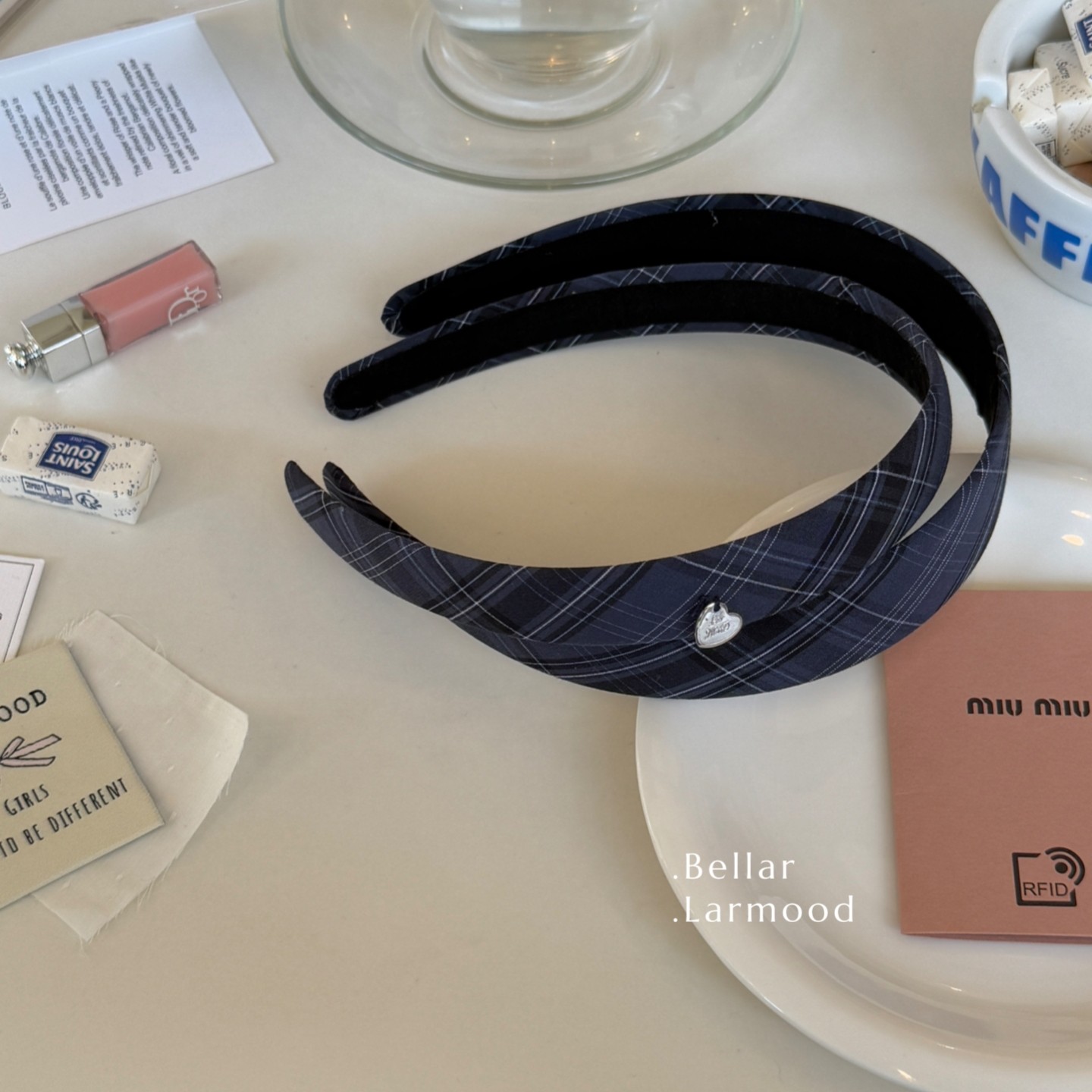 Bellar/larmood Vintage bbr经典复古格纹少女学院风爱心圆片发箍