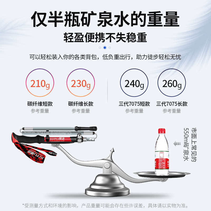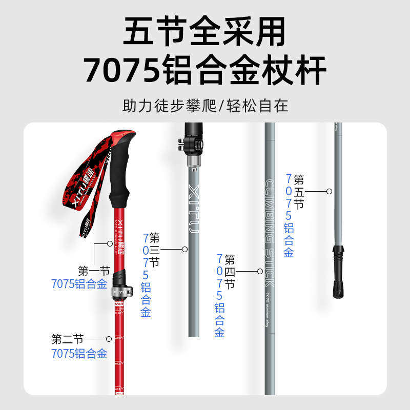 曦途登山杖超轻短碳素纤维户外折叠伸缩行山手杖女徒步爬山拐棍男