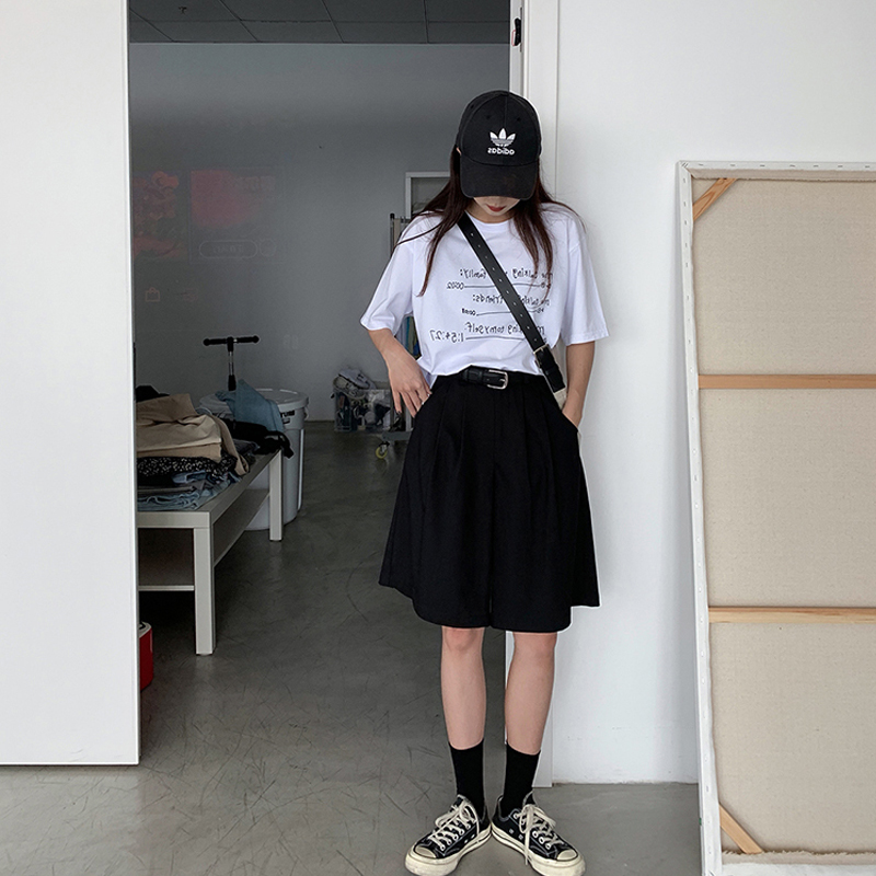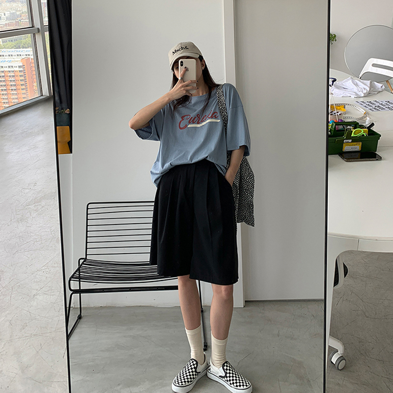 胖mm西装阔腿短裤女2021夏季薄款a字外穿大码高腰宽松显瘦五分裤