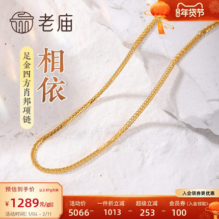 老庙黄金足金999四方肖邦链项素链百搭经典基础款官方旗舰正品