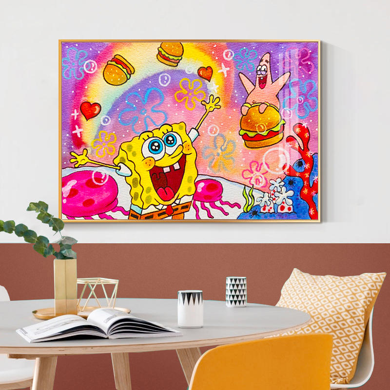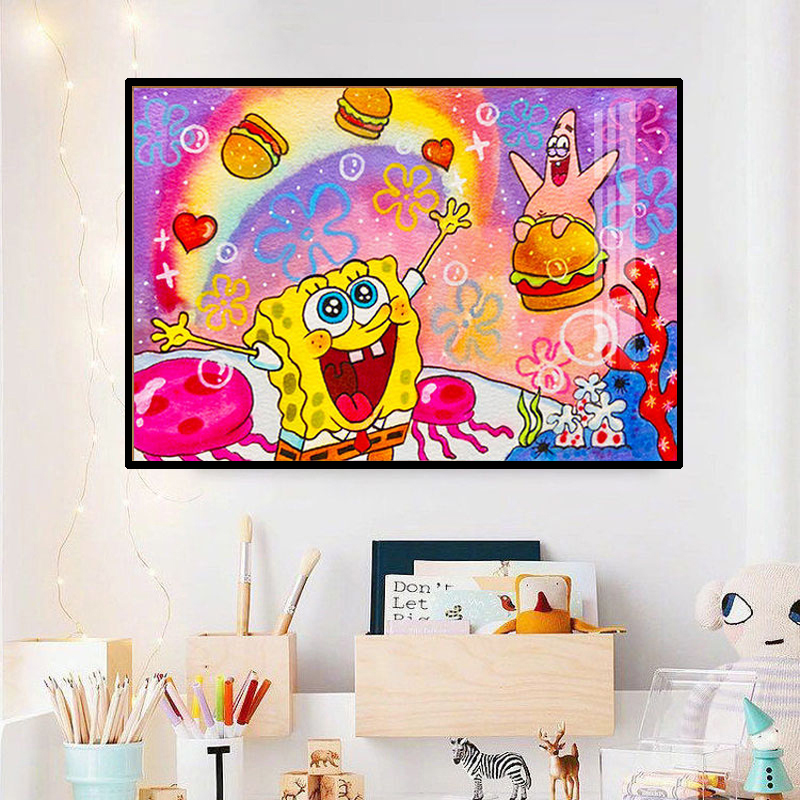 钻石画2023新款满钻海绵宝宝与派大星儿童点贴钻十字绣卧室手工贴