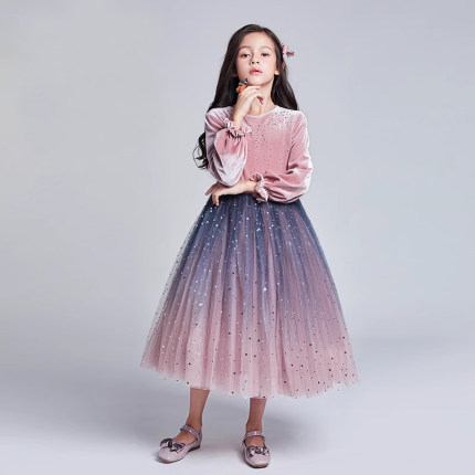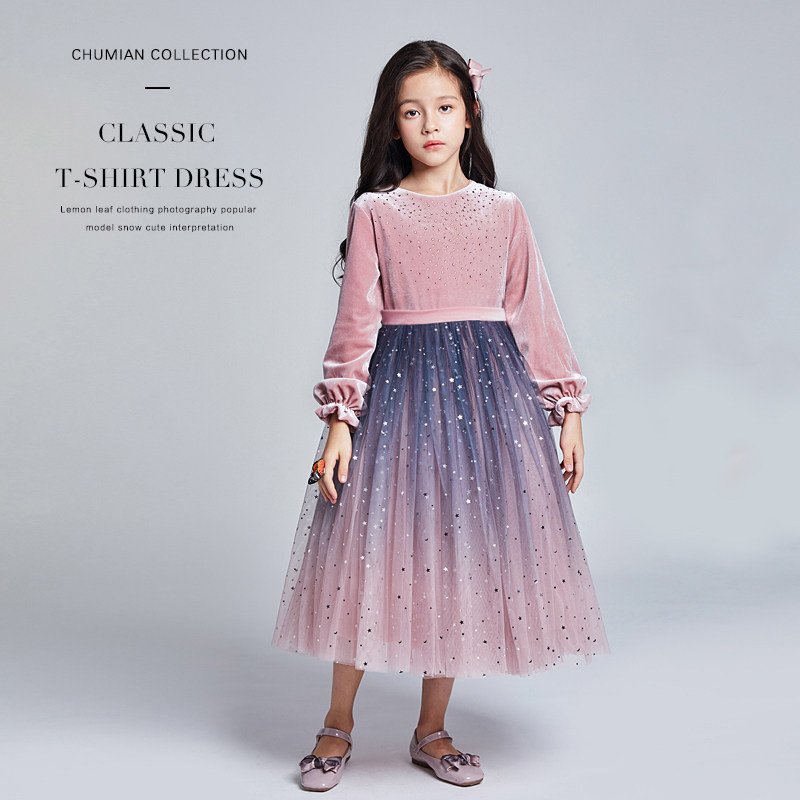 冬装大女童连衣裙丝绒小女孩新年童装秋冬儿童粉色公主裙宝宝裙子