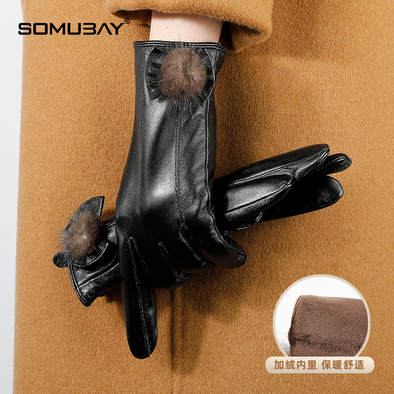 皮手套女士冬季羊皮加绒骑行摩托车开车防风触屏防寒真皮保暖手套