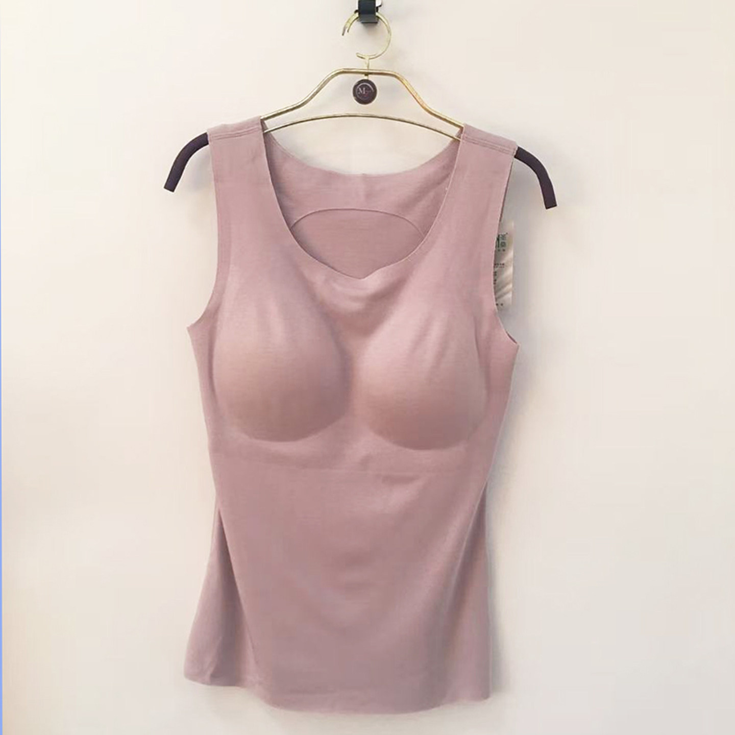 桑扶兰正品带胸垫背心固定一体免穿文胸肌底衣秋衣圆领S2021010