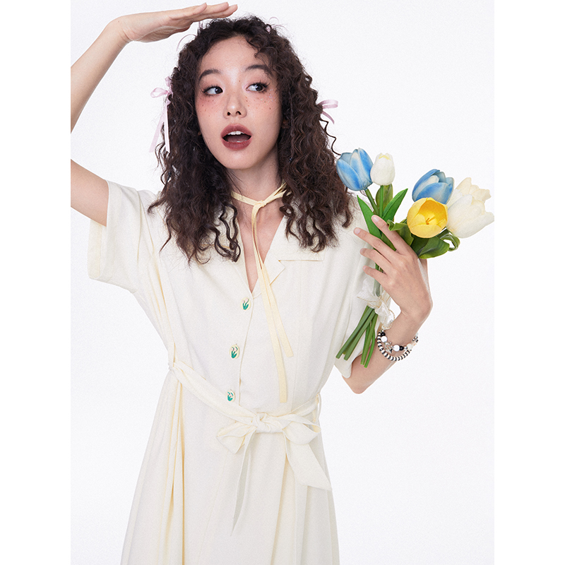 化学少女「浪漫诗篇」法式花边a字连衣裙春夏收腰显瘦中长款裙子