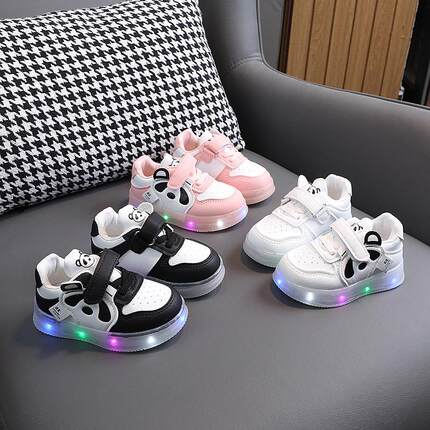 幼儿园室内鞋女童板鞋超火发光熊猫男童小白鞋宝宝鞋子学步鞋1岁4