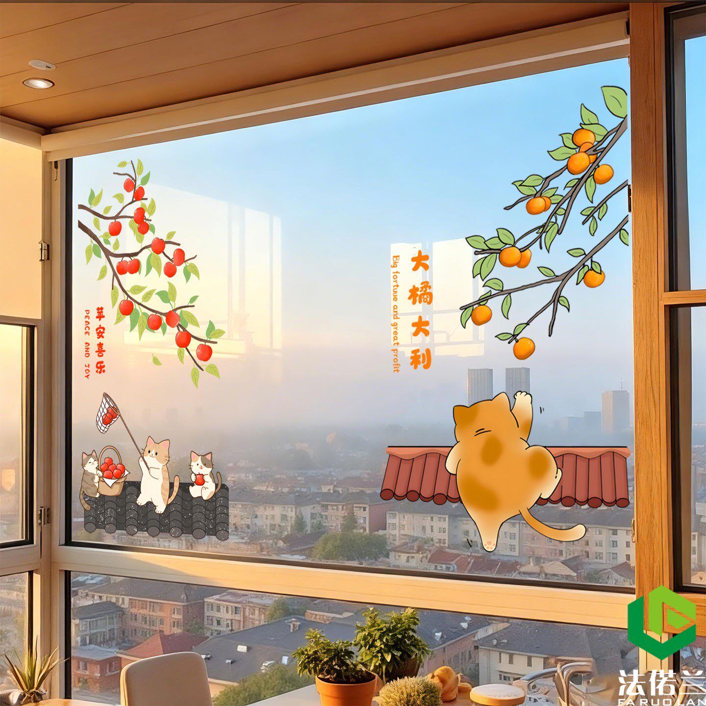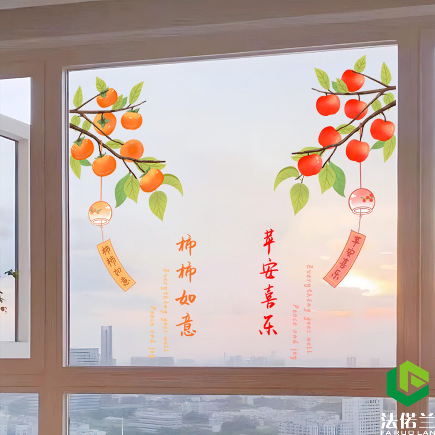 新年柿柿如意窗花玻璃门布置贴纸