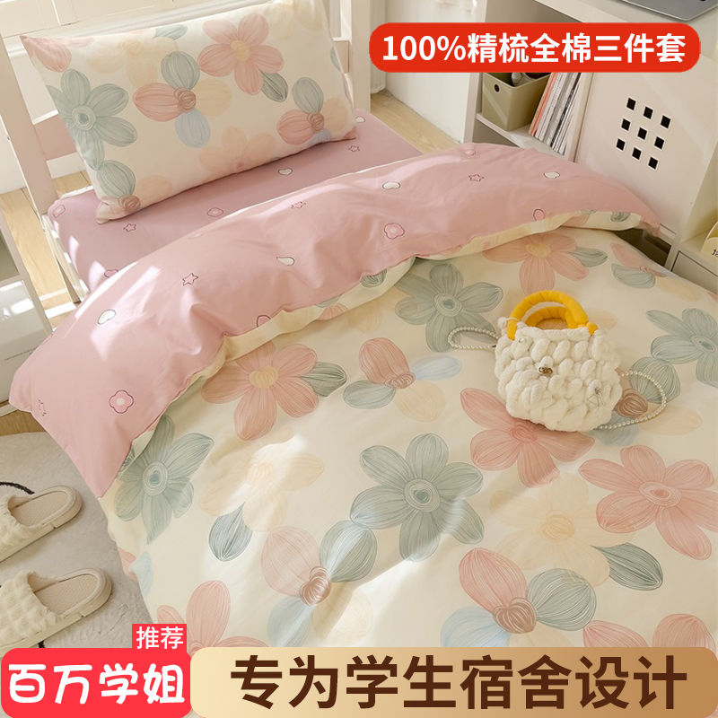 纯棉学生宿舍三件套100全棉w被套上下铺床单被罩单人儿童床上用品