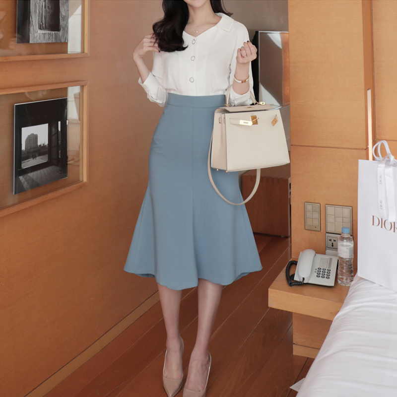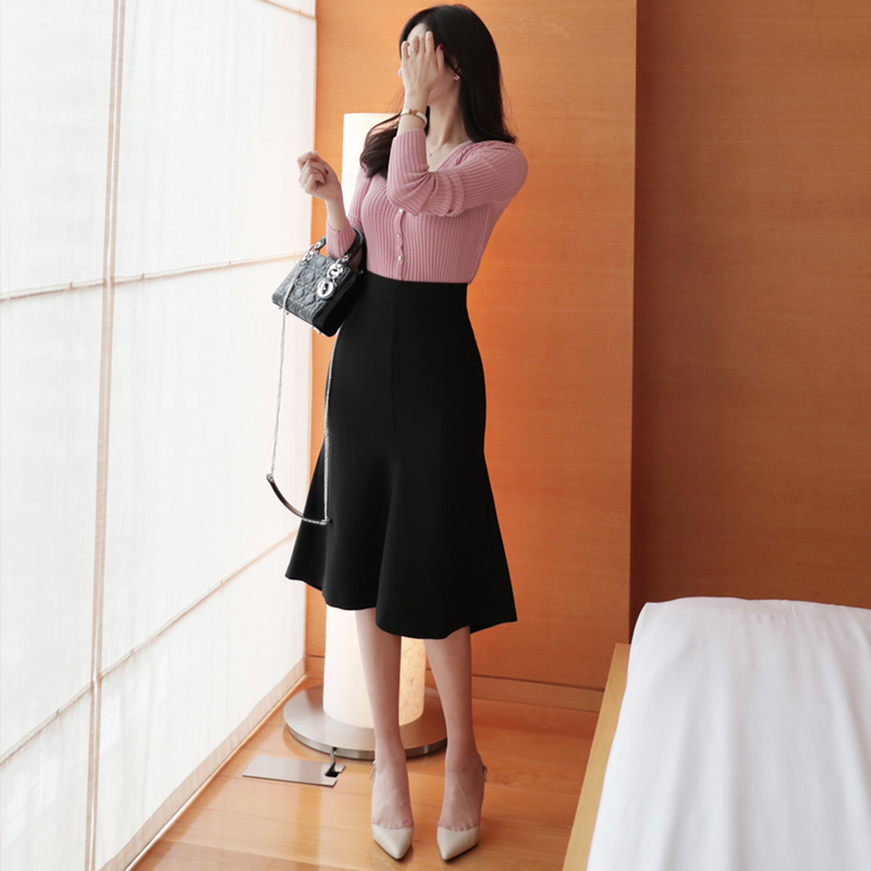 鱼尾裙半身裙女秋季包臀裙中长款高腰气质半裙黑色a字裙子半身裙