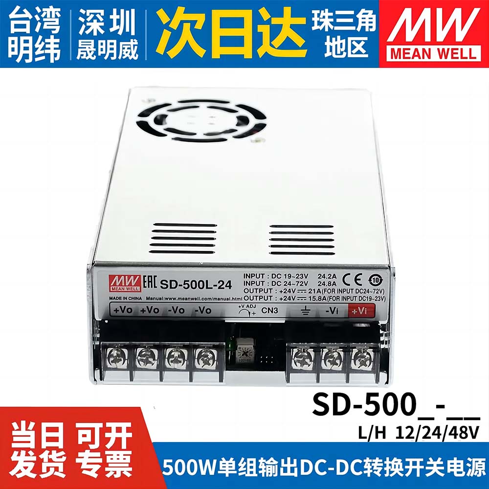 明纬DC转DC直流500W开关电源SD-500L/500H/1000L 12V 24V 48V