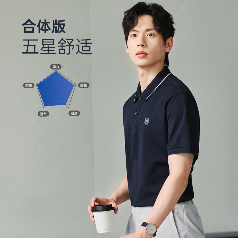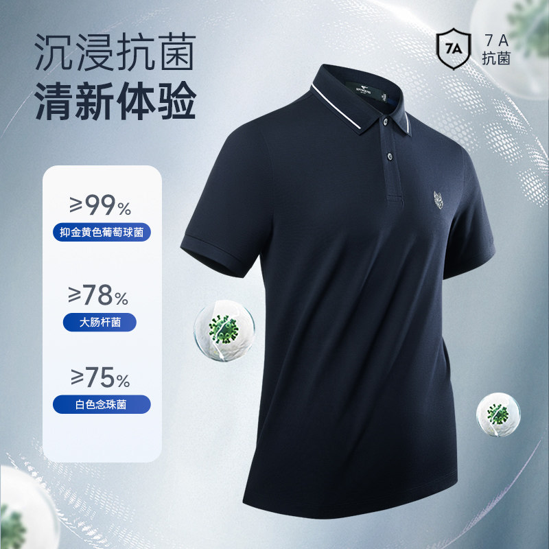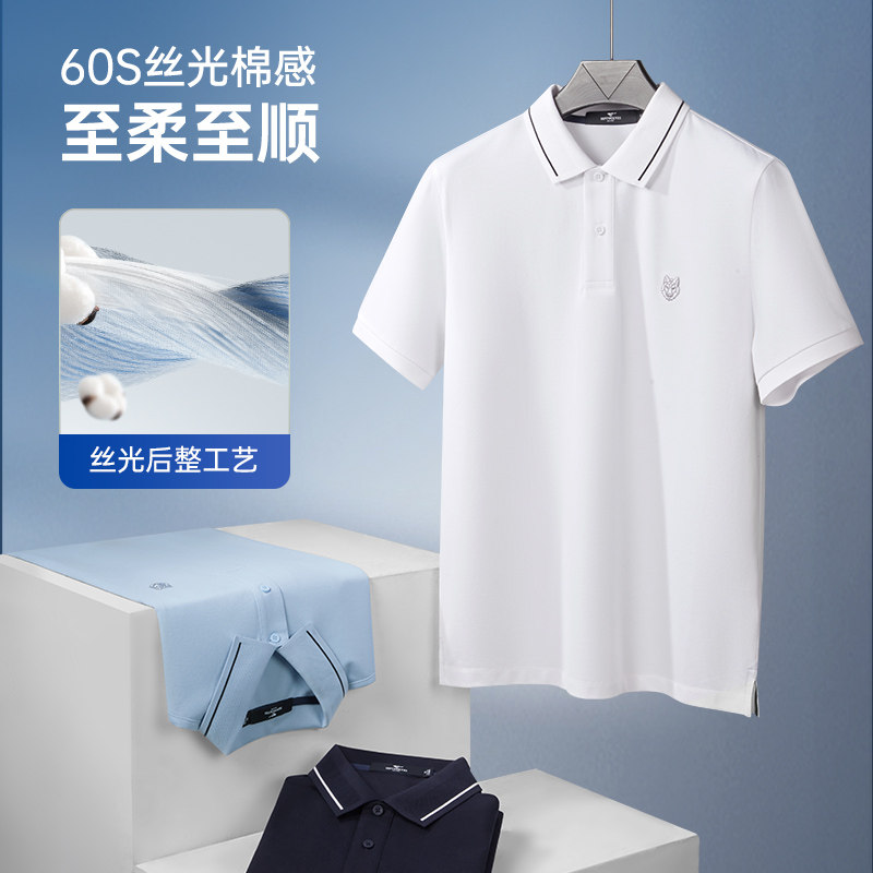 [丝光棉]七匹狼短袖POLO衫男士2025夏季新款透气休闲短款T恤男装
