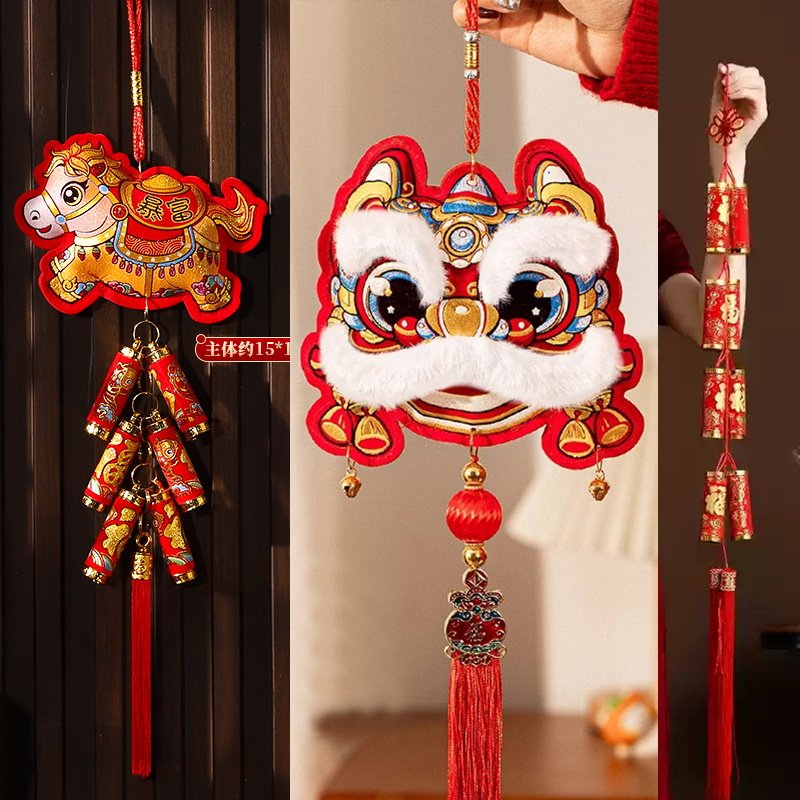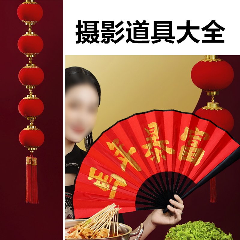 新马年拍照拍摄道具装饰品挂件春节氛围摆件儿童表演灯笼对联扇子