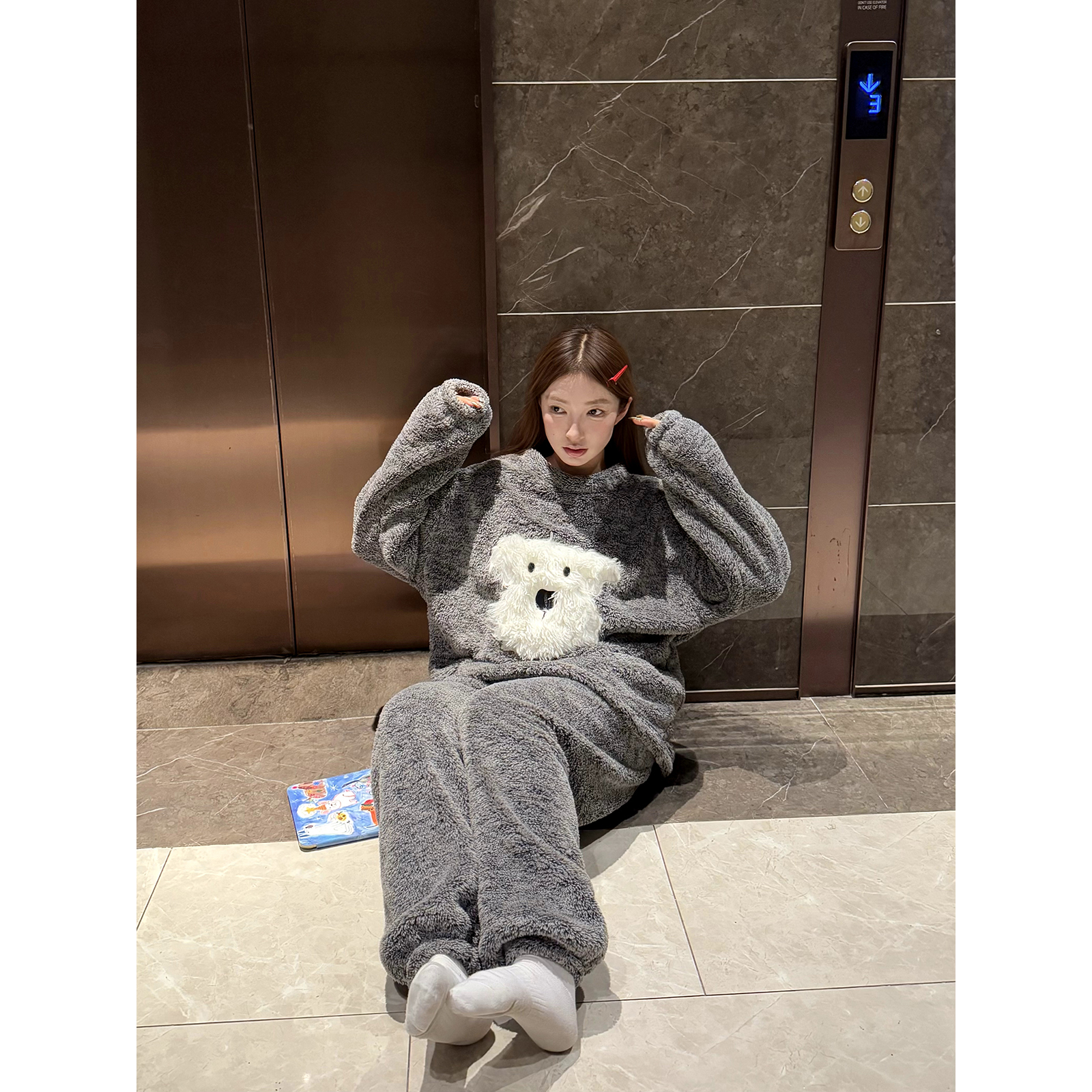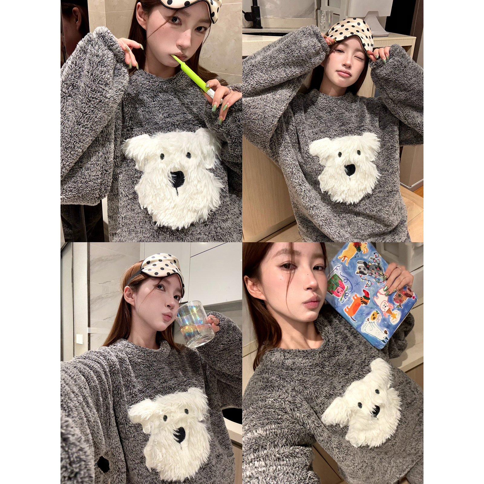 JoyceBra可爱毛绒小狗珊瑚绒睡衣女秋冬季加厚防寒圆领家居服套装