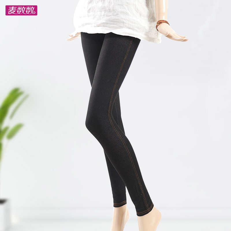 弹力仿牛仔薄款春秋弹力加长打底裤外穿踏脚蹬裤女士高腰显瘦大码