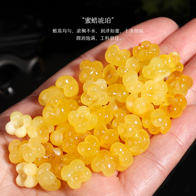 原矿蜜蜡琥珀雕刻桂花小吊坠小滴溜弟子珠精致小挂件DIY项链手绳