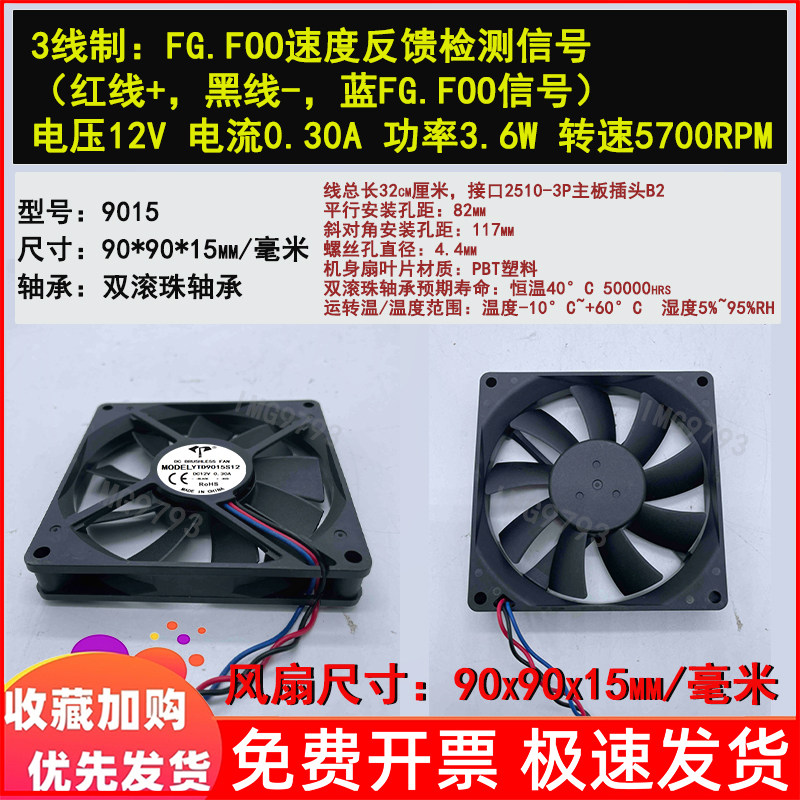 全新9cm厘米9015 5v12v24伏FG/RD/PWM机箱电源90x90x15mm散热风扇