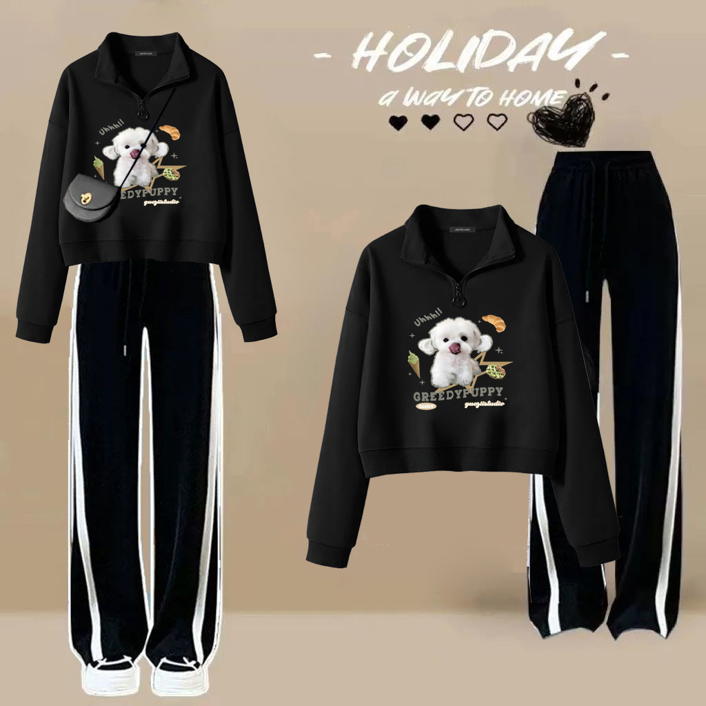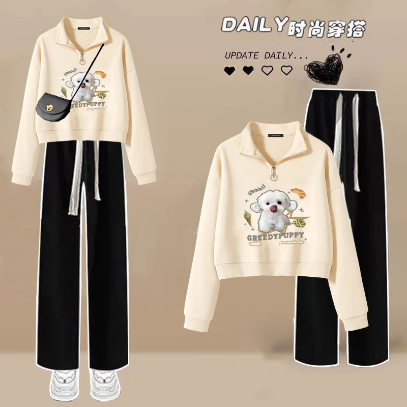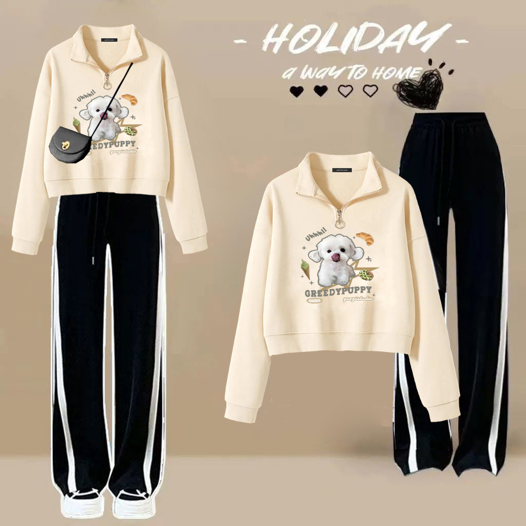 初中生运动少女套装秋季中学生衣服大童学院风polo卫衣穿搭一整套