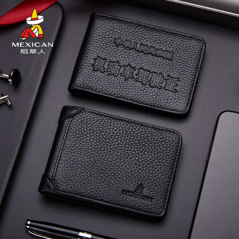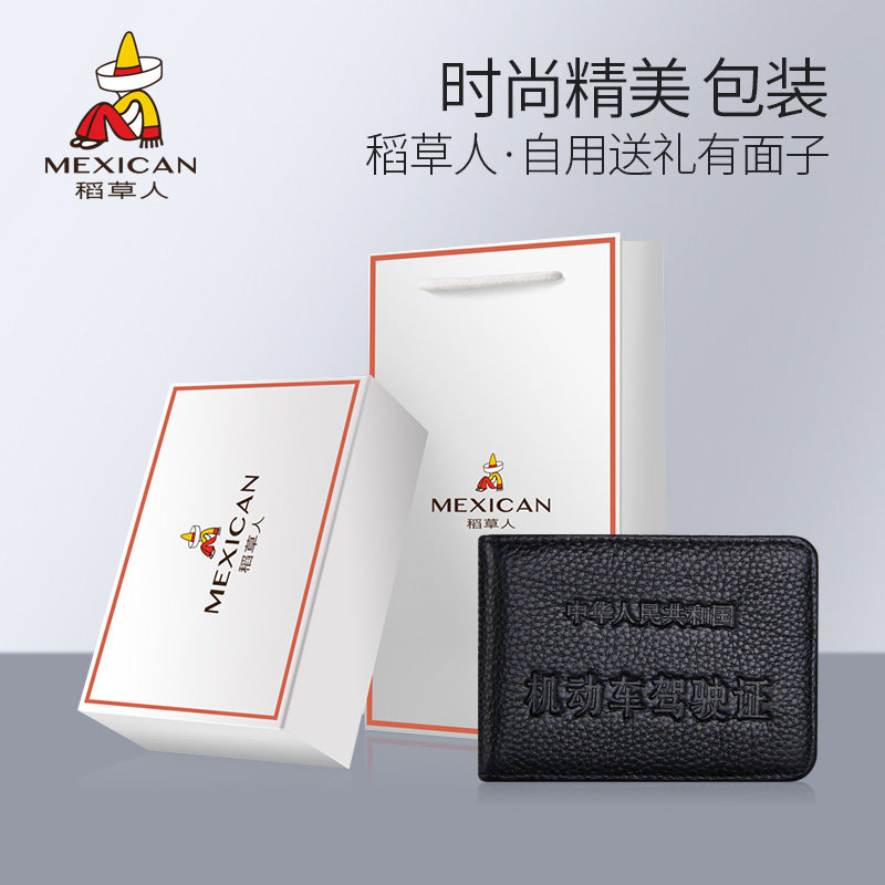 稻草人钱包男驾驶证卡包男皮套证件夹牛皮卡位多功能超薄高档男士