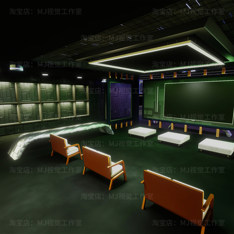 烘焙多个会议室场景演播厅舞台座位C4D屏幕3D模型blender建模1114