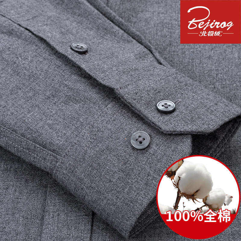 北极绒男士立领长袖衬衫纯棉磨毛商务休闲中年爸爸装圆领衬衣全棉